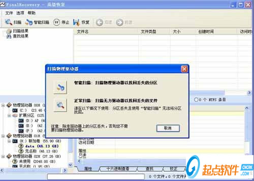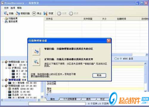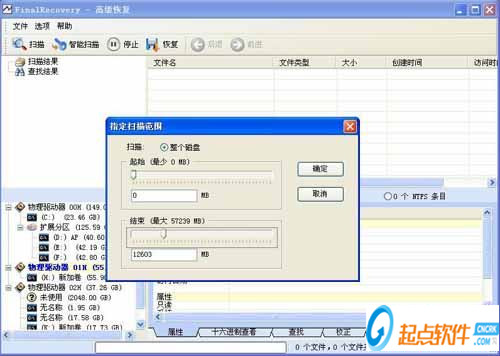 如果硬盘分区表已经损坏,请先选择智能扫描,让它找到分区信息(技巧:如果你能大概确定分区开始的位置,就不需要每次都扫描整个硬盘,而是直接选择分区开始前的一段扫描就可以了)