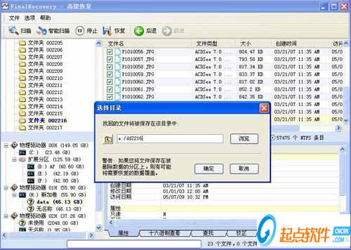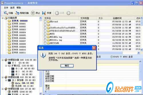 在扫描分区完成后,FinaRecovery会以自己的顺序列出目录,你只要挨目录寻找自己的文件进行恢复便可。