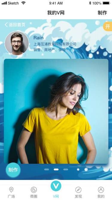 产品主要制作操作页面,主要包括:V网的制作、V网复制、海报模版、节日贺卡、相册展示、锁屏壁纸的的制作