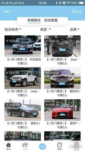 1、车主自由发布车辆供新人选择婚车;