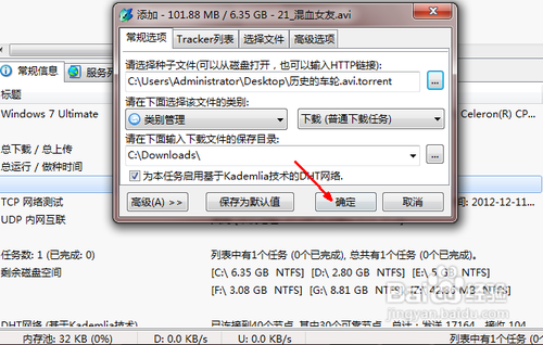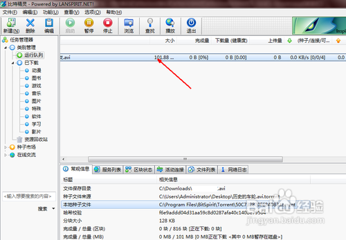 确定无误这个bt种子或者下载链接,然后点击确定按钮开始下载。确定之后,软件会自动识别这个链接或者bt文件,并将里面包含的文件自动列在正在下载的一栏里。