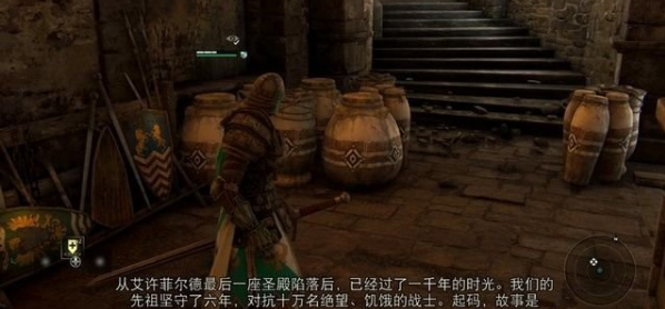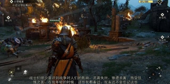 登到右前方的平台,朝着远处山峰的城镇望去,找到观察点(4/10)。那里是主角的出生地艾许菲尔德,现在被黑石军团控制着。