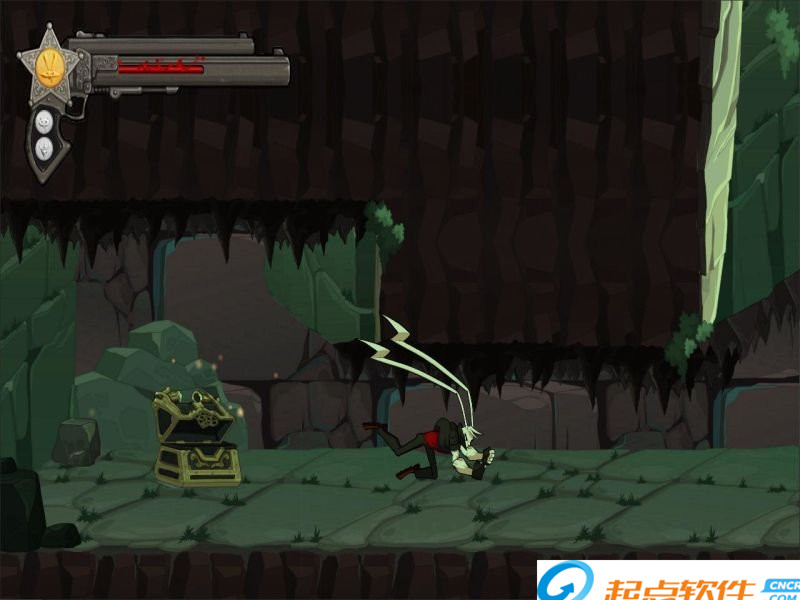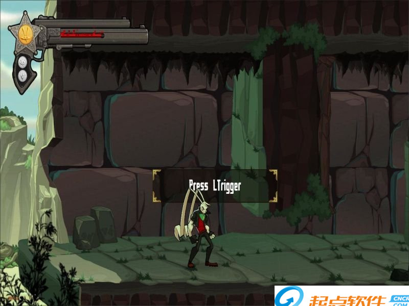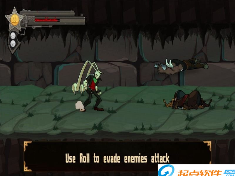 step9.走上沙地,遇到了一只黄鼠狼和一只老鼠,同样用散弹枪将他们推到一块,再用一套轻击连招把他们击倒。随后再次进入一嗰洞顶矮小的岩洞。在此也会遇到一只黄鼠狼和一只老鼠,同样的方式对付他们,但是不要在此位置进行跳高,否则会被洞顶的尖锥给直接弄死。