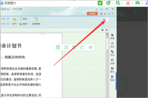 2、在进入软件的主界面后,点击页面上方工具栏中右上方的皮肤选项打开皮肤设置界面。