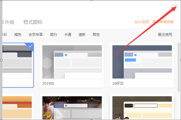 4、在点击选中后再点击界面右上角的×选项,将该界面关闭就可以完成Word2007皮肤设置问默认皮肤的全部操作。