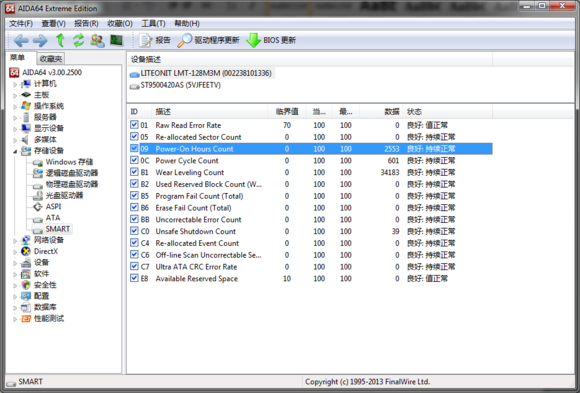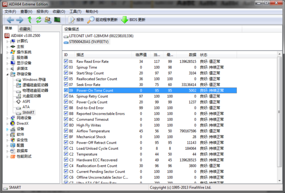 在储存设备-SMART中可以看到。安装了用作加速的固态硬盘的笔记本在鲁大师中可能不显示使用时间和次数,在AIDA64里面都是可以显示出来的。