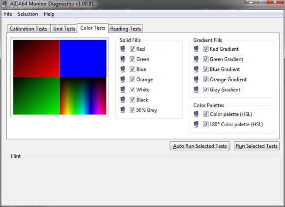 工具-显示器检测。用纯色的检测有无坏点。在Color Tests下面的Solid Fills中,直接点击选择框前面的图标。