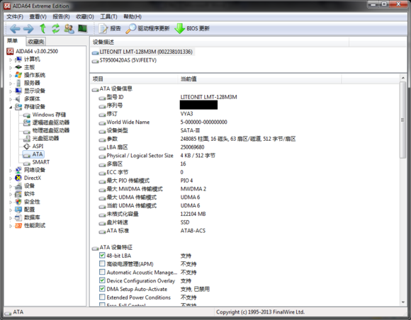 储存驱动器-ATA中可以看到硬盘的详细信息,这里显示的SATAIII才是正确的。
