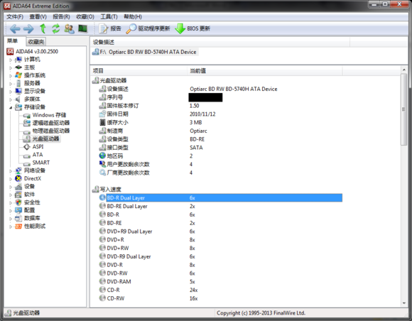 在储存设备-光盘驱动器中还可以看到光驱的信息,比如缓存和各项的读写速度。