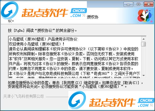 在安装开始之前,我们需要阅读并同意小鸟壁纸(原360壁纸)的授权协议,我们必须同意协议,才能继续安装小鸟壁纸(原360壁纸)。点击[我同意]继续安装进程;