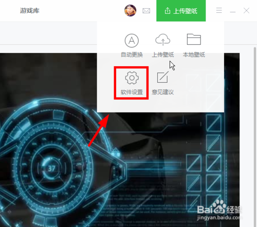 弹出下拉菜单,点击软件设置,