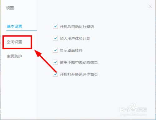打开设置面板后,点击空间设置,