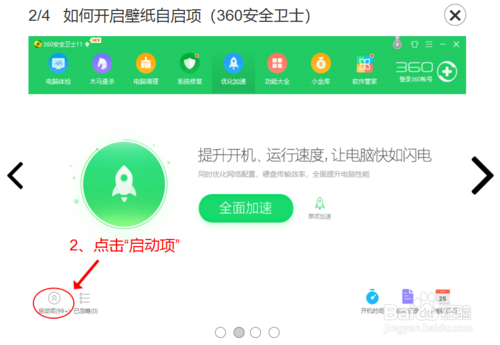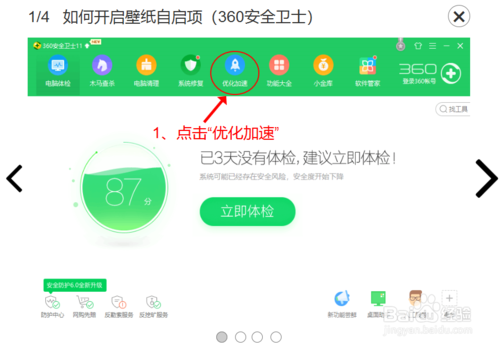 360小鸟壁纸软件左面开机不能自己启动怎么处理?点击“优化加速”