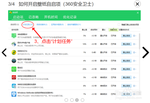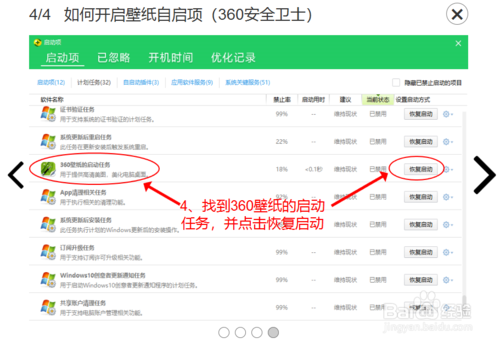 找到360壁纸启动项任务,并点击恢复启动