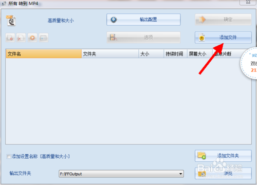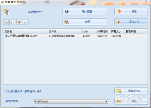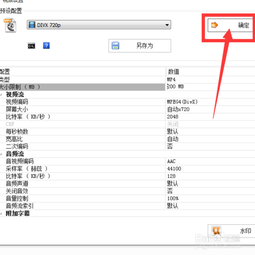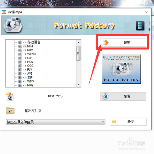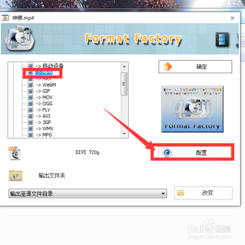 2、然后将格式改为MP4格式,再点击右侧的配置按钮。