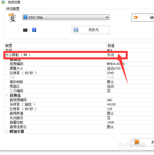 4、将大小调整为合适的大小,一般推荐原视频大小缩小10倍左右的大小。(注视频文件越小,视频内容越不清晰)