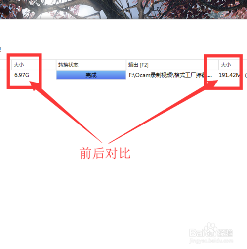 7、压缩完成后就可以看到视频前后的大小对比了。但同样的视频文件小了也意味着视频的画质差了。