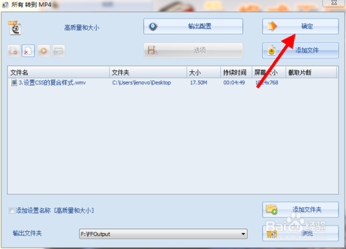 4、在左下角选择文件输出的路径,再点击右上角的确定操作。
