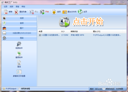 7、然后在主界面中点按开始按钮,稍等片刻界面下方就会出现提示任务完成,视频就合并完毕了。