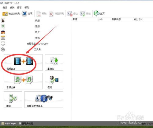 2、进入工具集界面后点按工具集中的视频合并标志,如下图所示。