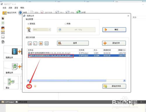 5、合并的顺序是从上到下,上面的视频先播放,下面的视频后播放,如果想改变顺序,可以选中某视频,然后点按界面下方的向上或者是向下改变其位置。