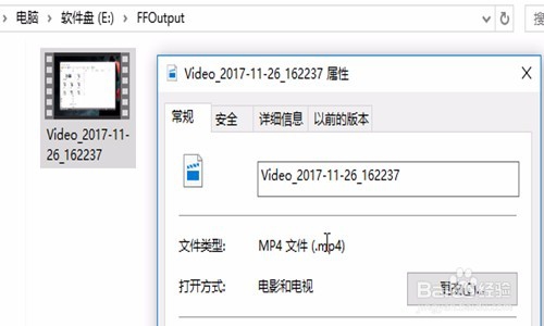 6、然后我们打开刚才文件输出的目录,打开文件属性即可查看已经转成了mp4格式了。
