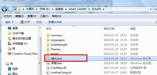 1、在本站下载Xshell后,在安装包中有一个“绿化.bat”的文件,双击打开。注:由于版权问题,本站不再提供软件下载,大家如果需要,可以到网上搜索。