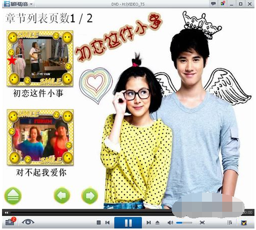 2、接着,出现光盘开始菜单界面。在主菜单(暴风影音中指的是标题菜单)中选择进入子菜单。选择某一视频进行播放即可。