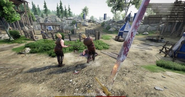 首先是长兵流,这个游戏并没有《骑马与砍杀》那么硬核,长武器中典型武器就是长枪,按常理,长枪能够发挥最大威力的部分应该是它的枪头,所以《骑马与砍杀》里面的枪兵,如果被近身了,那就没有多少发挥空间了,因为敌人已经进入了枪头无法触及的范围,但是《MORDHAU》不同,只要你的武器没有打到场景物品上或者是被格挡,那么长枪可以说是四次元武器,哪怕是你跟枪兵脸贴脸他还是能刺中你。