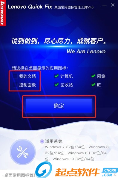 如果希望取消某些图标在桌面上的显示,只需要在软件界面上取消勾选对应的项目,然后点击“确定”即可。如图: