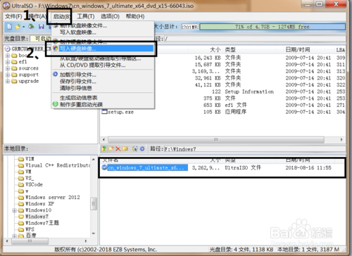4、选择好镜像之后,在选项卡选择“启动”,然后再选择“写入硬盘映像”