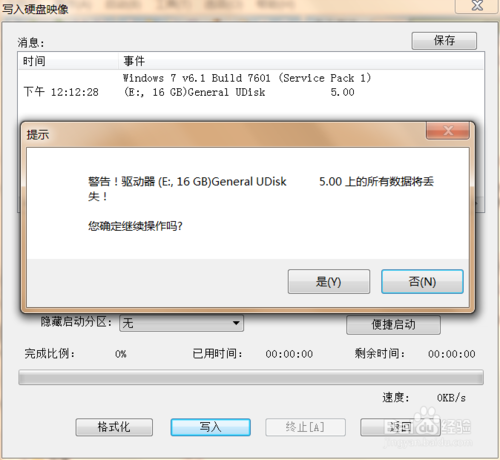 7、最后选择写入,在弹出的提示窗口选择“是”,最后等待写入完成就可以了