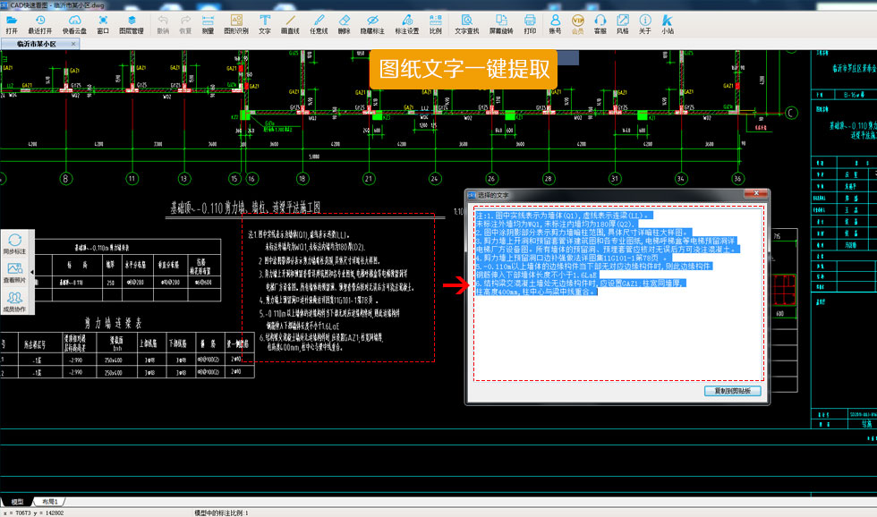 快速提取图纸中的文字,并可复制。资料再多也不愁!