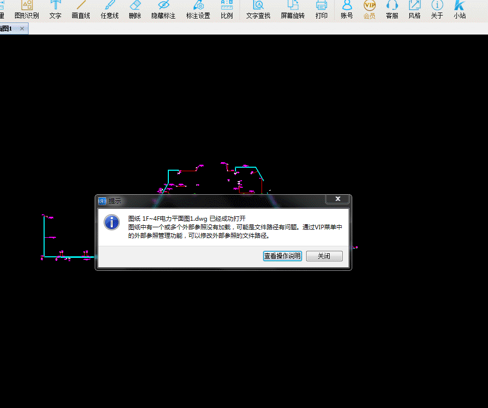 1、如果是显示不全,请检查图纸是否有外部参照。先点击VIP按钮--外部参照管理--加载好所有外部参照(已加载的无视)--绑定所有参照并另存。然后打开新图纸,再转t3或者分图或者导图算量软件。
