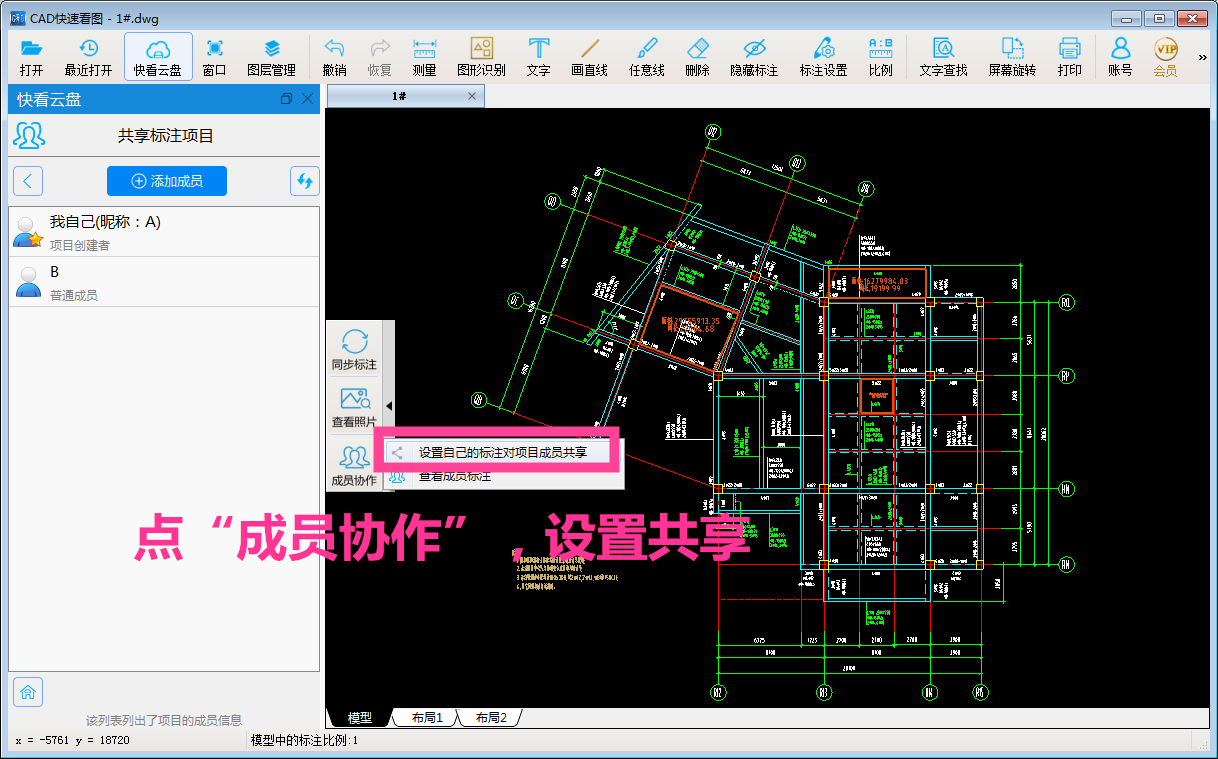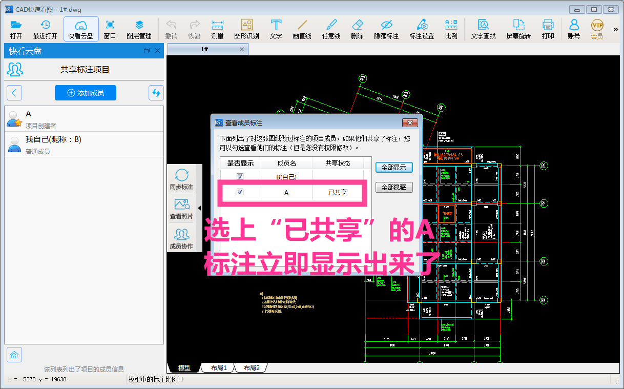 添加完成后,再点图纸左侧功能里的“成员协作”-“设置自己的标注对成员共享”