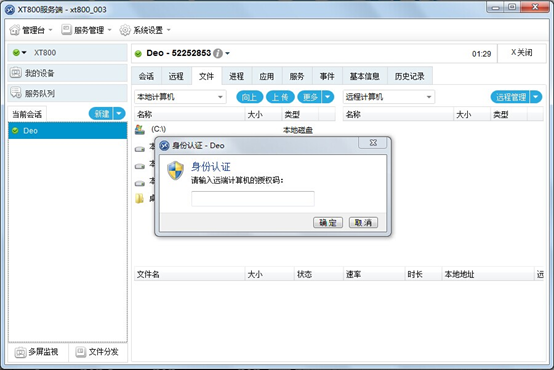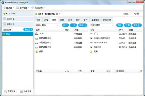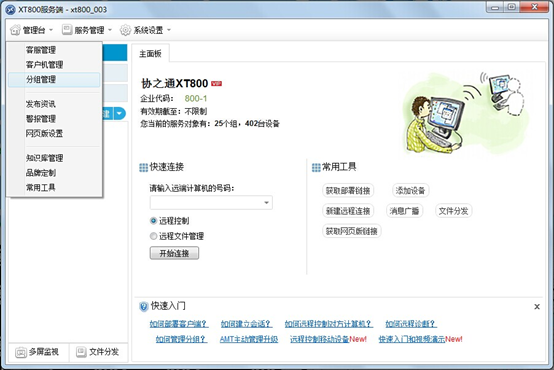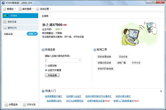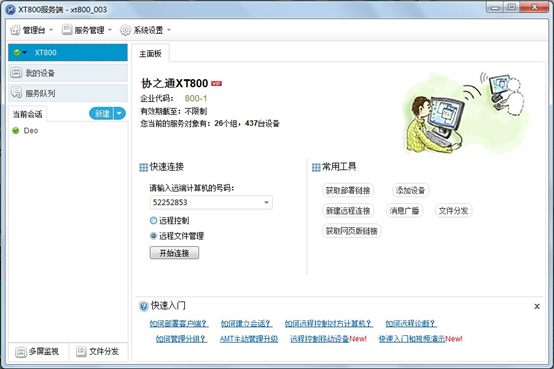 登陆协通XT800远程控制软件服务端,在“主面板”下方的“快速连接”,输入被控端号码之后切换至“远程文件管理”点击“开始连接”