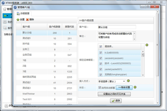 XT800服务端:登录帐号之后找到“管理台”下方的“分组管理”;