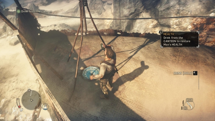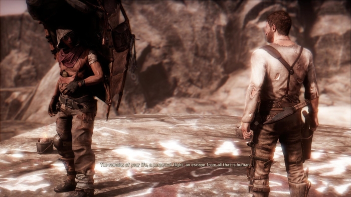 整个废土的世界看上去相当震撼,驰骋在漫无边际的沙漠废土当中,整个场景的气氛被烘托到了极致,游戏的光影效果和天气效果是这款游戏最赞的地方之一,整个沙漠伴随着光照而展现出不同的风光,而游戏中的沙尘暴更是让作者倒吸一口凉气,模糊的场景伴随着微小的沙尘打到主角的身上,能够很贴切的感受到大自然的力量。
