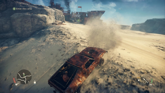 玩家要做的就是在这个动态的、开放的世界中得以生存,而这片土地也有一个十分贴切的名字:“废土(The Wasteland)”。这里的战斗主要发生在地面上,玩家需要加试自己的战斗车辆来同各种土匪团伙进行交战,摧毁敌人炼油厂,杀掉敌人精英士兵,烧掉敌人燃油储备,摧毁敌人的图腾标志。游戏提供了变化莫测的任务来帮助玩家在这片土地上寻找补给,升级自己的车辆。