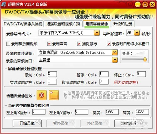 使用软件自带的橙色录像区域选择工具,可快速设置录像的范围。在“屏幕录像快捷键设置”栏中,记下实时动态对焦快捷键,在录制时使用该快捷键,可迅速对焦并放大鼠标所在区域,这在录制教学视频时尤为好用!