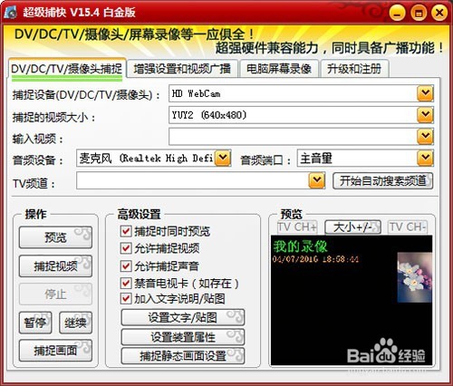 4、使用“DV/DC/TV/摄像头捕捉”功能,录制硬件视频