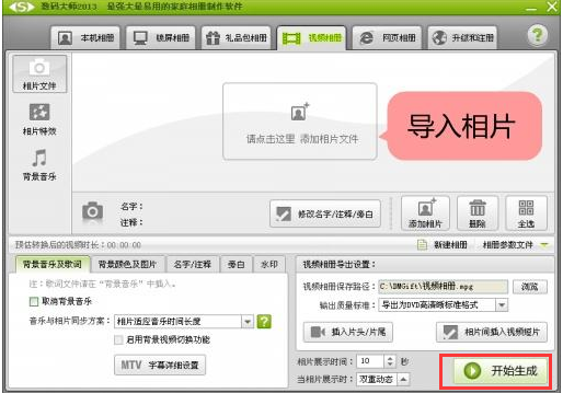 首先我们需要先使用数码大师软件制作视频,制作完成后在界面的右下角有开始生成选项,我们点击后就可以保存你制作相册视频了。保存方法是很简单的,你可以自己试一试。