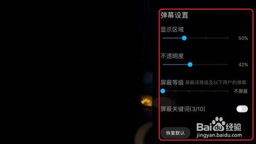 4、打开“弹幕设置”之后,可对其显示区域/透明度等进行设置。