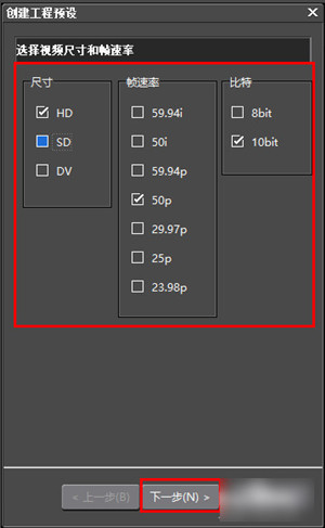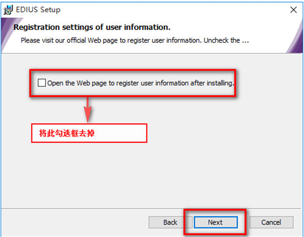 6、进入到EDIUS PRO8软件下图中的界面,我们跟上步骤一样将勾选的选项去掉之后点击界面下方的下一步。