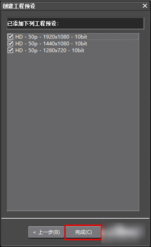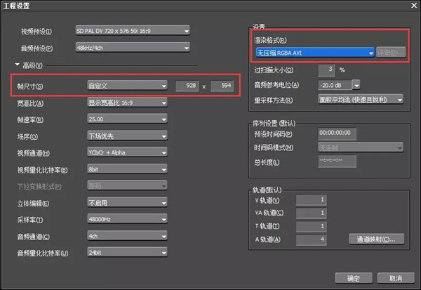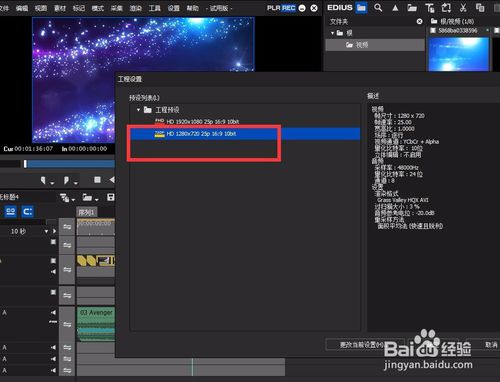 4、在 工程设置 对话框里面填写工程名称等信息,然后选择一种预设的视频格式,点击 确定 。