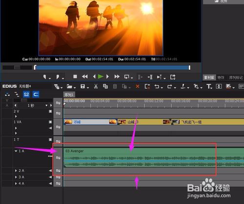 1、首先,我们将带有噪音的音频或者视音频导入到素材库中并且拖拽到时间线上。