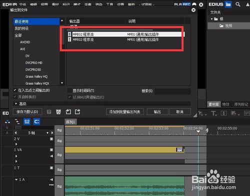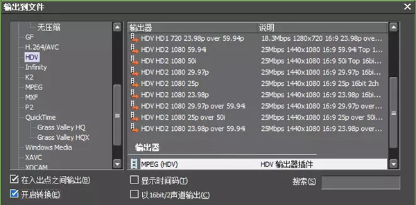 5、接下来就是点击输出按钮,继续点击“输出到文件”,然后就是选择输出视频的格式。不要忘记了还要勾选“在入出点之间进行输出”。