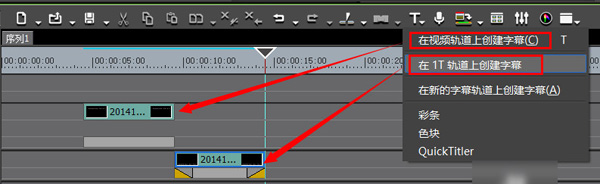 8、两种不同的插入字幕的方式,所产生的结果也不相同,根据编辑视频的需要,可以选择合适的插入字幕方式(如切换片段中间的字幕,需要使用 在视频轨道上创建字幕 功能)。