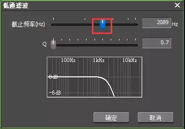 5、这里我们可以调整“截止频率”的滑块来控制通过声音的范围。通过调整,我们可以很好的控制通过的最高声音,高于这个点的声音都会被屏蔽掉。