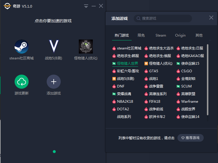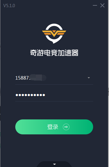 打开安装好的奇游客户端,输入你创建的奇游账户和密码。选择你想要联机加速的游戏,然后点击「一键加速」。